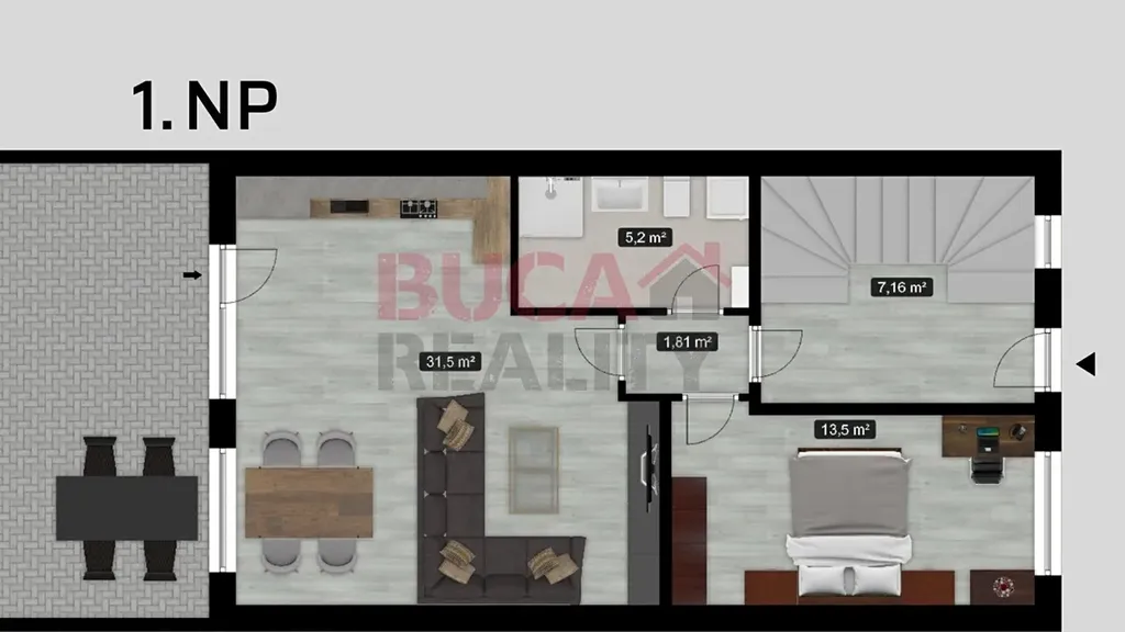 Nabízíme Vám k prodeji novostavbu bytu 2+kk v řadovém domě v novém developerském projektu „Slunečný vrch“ v Kaplici cca 30 km od Českých Budějovic. S parkovacím stáním, oplocenou zahradou a terasou. Byt se sestává ze vstupní předsíně, prostorné kuchyně s obývacím pokojem, ložnice a koupelny s toaletou. Terasa o rozloze 19 m2 a zahrada o rozloze 283 m2, orientovaná na jihozápad, Vám poskytne prostor na odpočinek a krásný výhled na Novohradské hory. Při výstavbě je kladen důraz na kvalitu, dlouhou životnost stavby a energetickou úspornost domu (PENB C – úsporná). Dům je vytápěn plynovým kondenzačním kotlem s rozvody podlahového topení ve všech podlahových plochách domu. Součástí domu při předání jsou podlahové krytiny, vybavení koupelen, obložky, dveře a každý kupující může ovlivnit konečnou podobu výběrem dle vlastního přání. Projekt „Slunečný vrch“ Vám nabízí jedinečné bydlení v blízkosti přírody a klidné části města, ale přesto v dosahu kulturního dění. Na nemovitost Vám zajistíme vhodné financování a dům si můžete rezervovat. Více informací Vám rádi poskytneme v naší kanceláři.