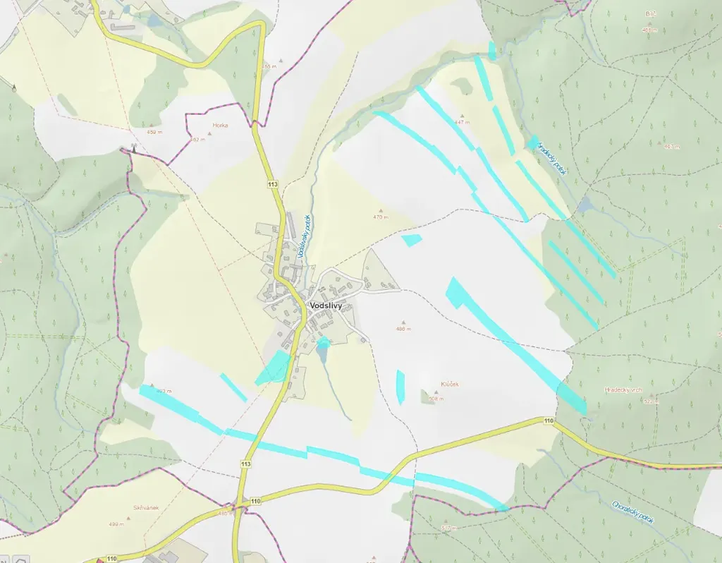 Nabízíme Vám k prodeji 1/2 podílu na pozemcích v katastrálním území Vodslivy, okres Benešov: Celková výměra pozemků činí 132 370 m2. Jedná se o tyto pozemky: