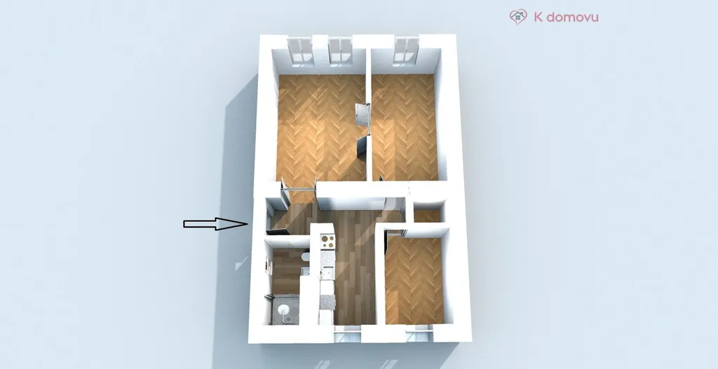 • Samostatné vstupy do všech pokojů, pokoje orientované na jih propojeny dveřmi (lze uzavřít)