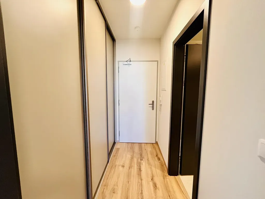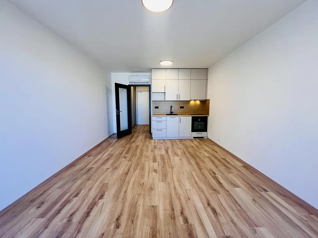 Je to 1+kk s novou kuchyňskou linkou na míru, klimatizací, kterou si můžete i přitopit, prostornou lodžií a sklepem. K dispozici bude i lednice, která nyní není na fotografiích. V předsíni je opravdu velká vestavěná skříň, a vchází se z ní do moderní koupelny s nadstandardně velkým sprchovým koutem, wc a pračkou.