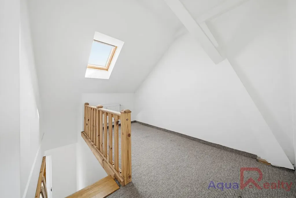 Byt je umístěný ve 3. a 4. podlaží a vznikl propojením klasického bytu s přestavěným podkrovním prostorem. Právě toto řešení vytváří jedinečný charakter nemovitosti a zároveň ponechává další potenciál druhá část půdního prostoru nabízí možnost budoucího odkupu od SVJ a následného rozšíření bytu o další místnosti dle vlastních představ.