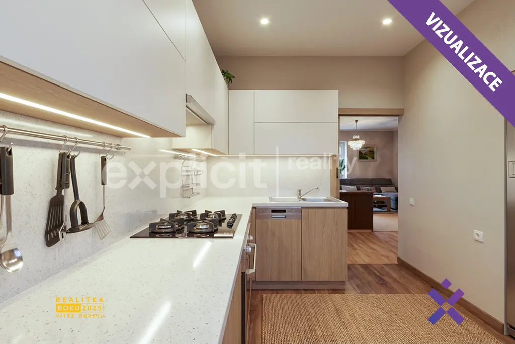 Dominantou bytu je samostatná kuchyně vybavená kuchyňskou linkou a myčkou nádobí, která poskytuje dostatek prostoru pro každodenní vaření i rodinné stolování. Na kuchyni navazují další obytné místnosti, které mohou sloužit jako obývací pokoj, ložnice a dětský pokoj či pracovna. Dispozice 3+1 tak nabízí dostatek flexibility podle potřeb nových majitelů.