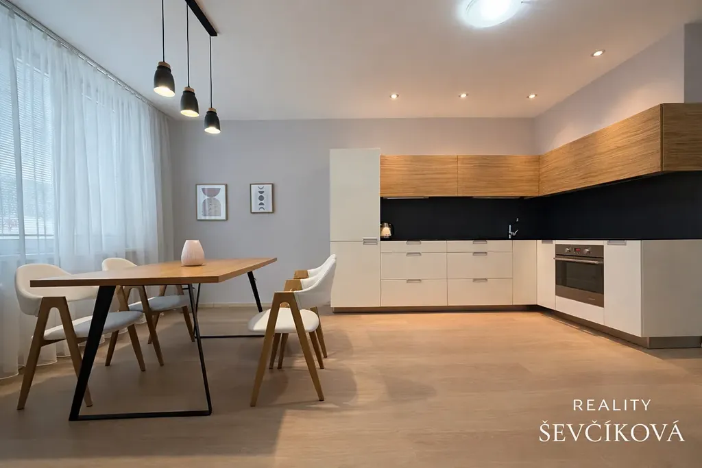 Dispozici tvoří vstupní chodba s velmi prostornými vestavěnými skříněmi, koupelna se sprchovým koutem a WC, dvě neprůchozí ložnice a velkorysý obývací pokoj s kuchyňským koutem a jídelní částí se vstupem na menší lodžii. Ložnice jsou orientovány do klidného vnitrobloku, kde se nachází také veřejné parkoviště s dostatečnou kapacitou.