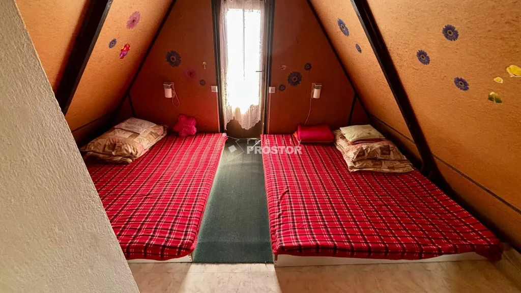 Do druhého patra se jde také po schodech a patro se používá na spaní. I zde je vstup na balkon.