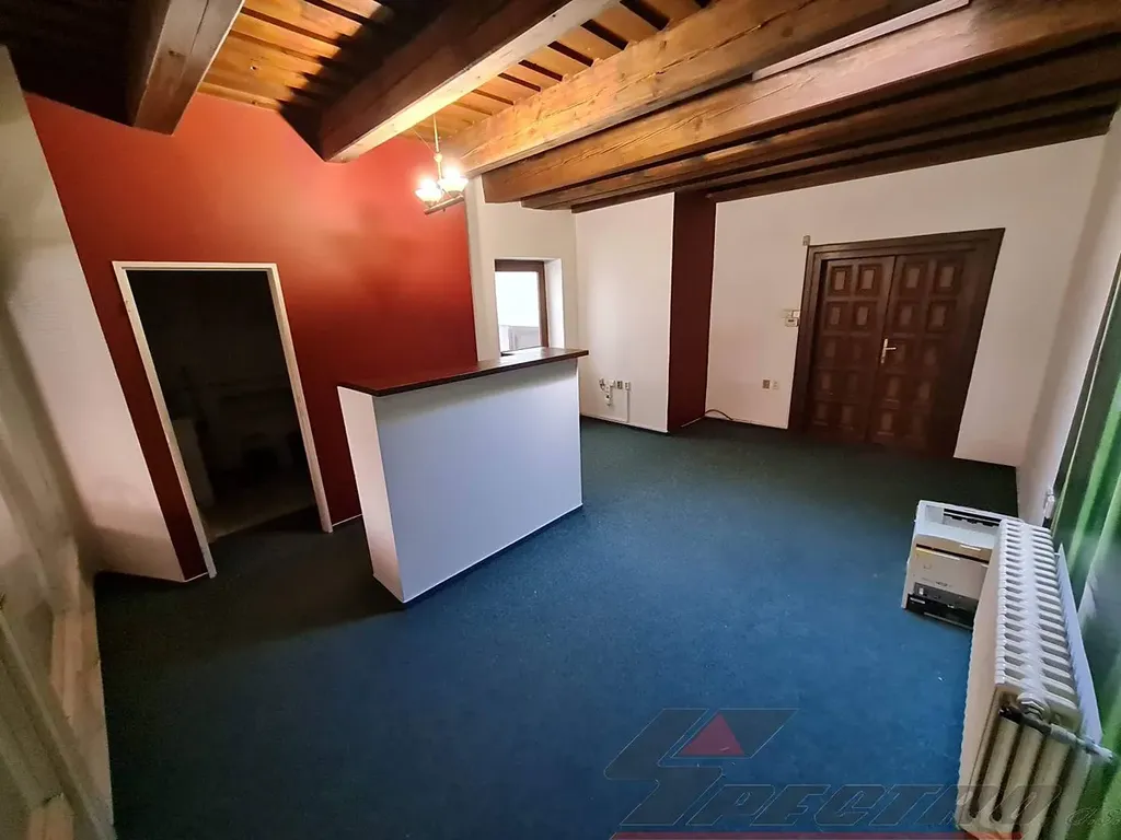 Nabízíme k pronájmu velmi reprezentativní luxusní nebytové prostory přímo v centru Plzně, Pražská ul. Nachází se v renesančním domě u nám. Republiky v podkroví ve 3.patře. Jedná se o 2 kanceláře s mezonetem o celk. výměře 102 m2 + terasa, vlastní kuchyňka a WC. Z předsíňky se vchází do místnosti o rozloze 25,78 m2 (recepce, sekretariát), z té je vstup do kuchyňky (4,18 m2) a prosklenými dveřmi se vejde do rozlehlé místnosti o vel. 38,33 m2, ze které vede dřevěné schodiště do mezonetového prostoru o vel. 37,56 m2, z něhož přístup na terasu o vel. 56 m2. Samostatná toaleta se nachází na vstupní chodbě. Vše vyznačeno na přiloženém nákresu - zeleně označené plochy. Nábytek lze v případě zájmu odstranit. Prostory mají vlastní zabezpečovací zařízení. Nájemné: 14.700 Kč. Energie a služby: 4.000 Kč (EE, topení, voda, úklid společných prostor a odvoz odpadků). Kauce 20.000 Kč. Provize 1 nájemné. Volné ihned.