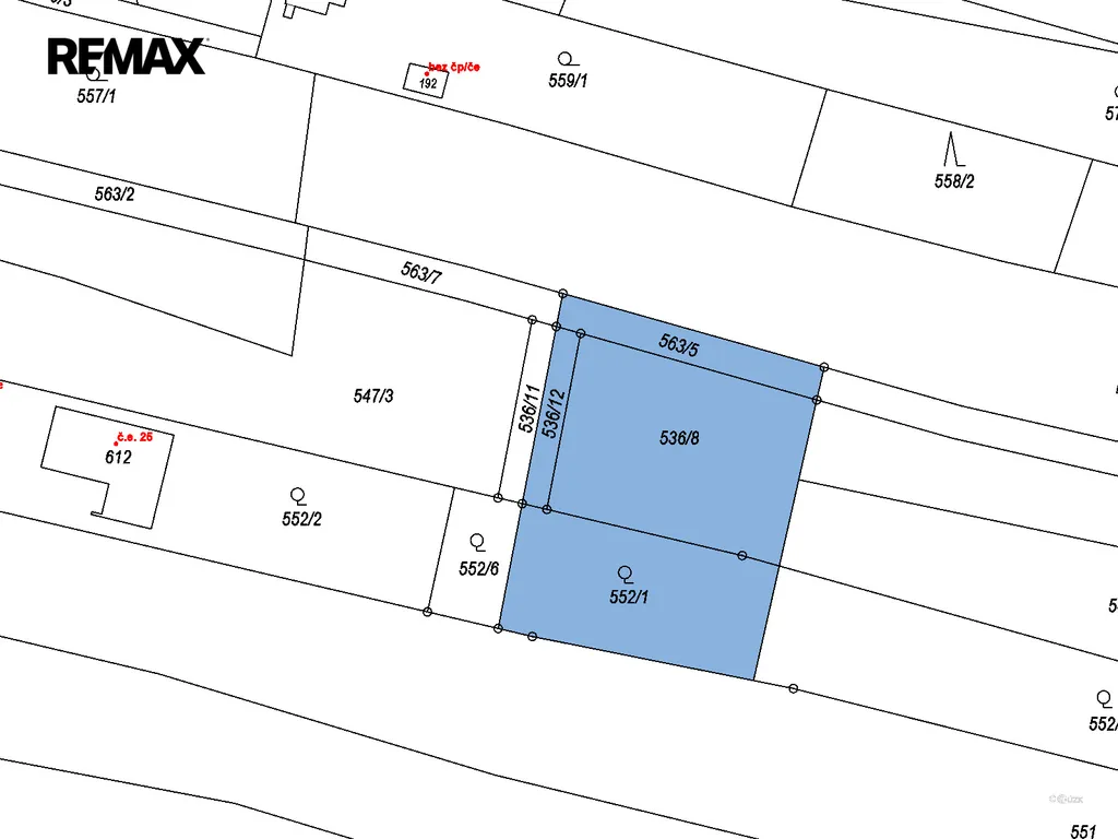 Pozemky parc. č. 536/8, 536/12 a 552/1 o celkové výměře 1 131 m² jsou v katastru nemovitostí vedeny jako orná půda a ovocný sad a momentálně nejsou určeny k výstavbě. Na pozemky je přivedena elektřina.