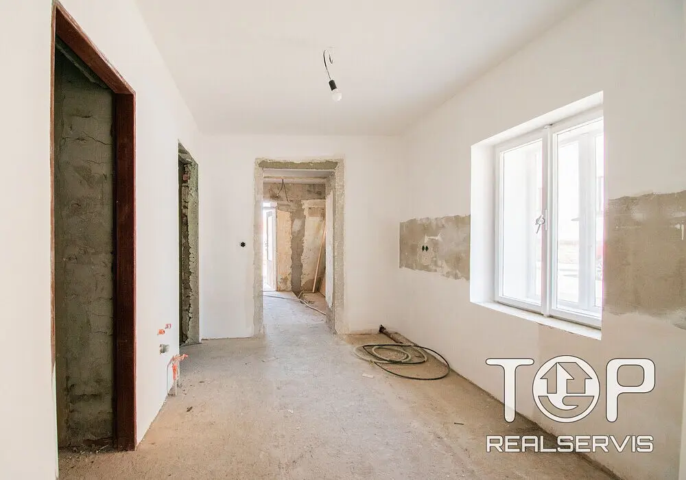 Nemovitost má dispoziční řešení 3+kk s dalšími technickými prostory a praktickým zázemím domu. V interiéru již byly provedeny důležité stavební práce – nové rozvody elektřiny včetně rozvaděče, nové rozvody vody a odpadů a v obytných místnostech nové betonové podlahy s nivelací. Stěny jsou opatřeny novými štuky a prostory jsou připraveny pro finální dokončení interiéru podle představ budoucího majitele.