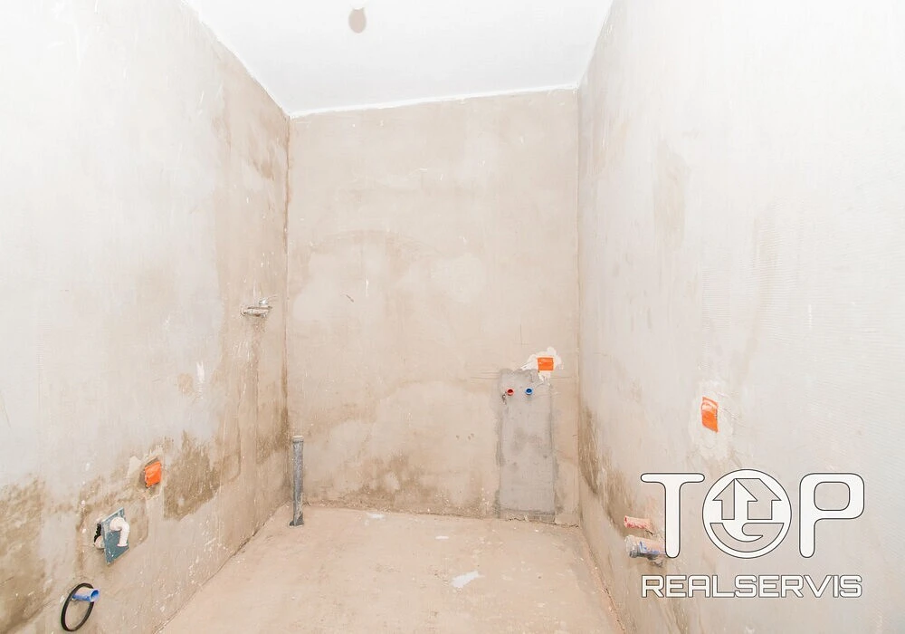 Koupelna je připravena k dokončení – k položení obkladů, dlažby a instalaci sanity podle vlastního vkusu. Vstupní zádveří a další prostory mohou sloužit například jako prádelna, sklad nebo menší dílna a nabízejí další možnosti praktického využití.