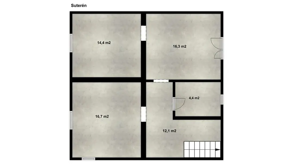 V přízemí se nachází obývací pokoj, kuchyň, ložnice a koupelna s WC, v patře jsou dva pokoje a půda s úložným prostorem. V suterénu jsou technické místnosti a kotelna.