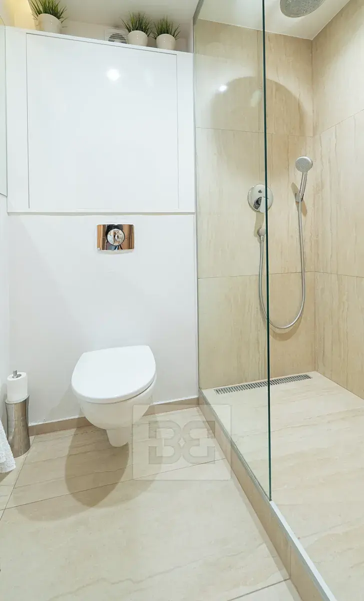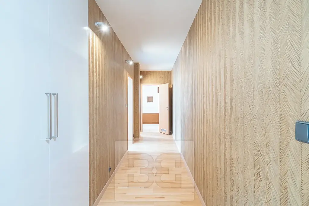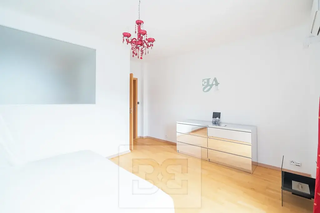 Byt dále nabízí dvě samostatné ložnice, každou s vlastním balkonem. K dispozici je koupelna s vanou, toaletou a bidetem a samostatná toaleta se sprchovým koutem.