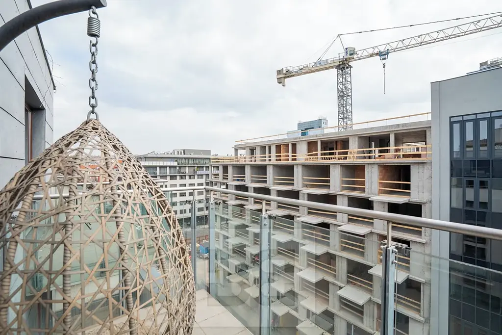 K bytu náleží čtyři balkony přístupné z jednotlivých pokojů a unikátní střešní terasa o velikosti 117 m², která nabízí velkorysý prostor. Bude zde i venkovní kuchyň. Najdeme zde i přípravu na vířivku.