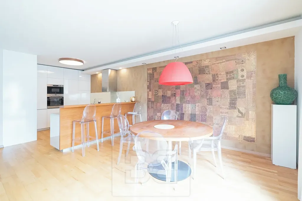 Nabízíme k dlouhodobému pronájmu výjimečný byt o celkové ploše 110 m², který se nachází v posledním, 8. nadzemním podlaží rezidenční budovy z roku 2009 s recepcí.