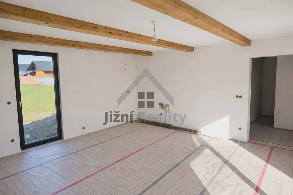 Nabízíme Vám novostavbu o dispozici 4kk v klidné lokalitě příhraničního města České Velenice v nové zástavbě na Pastvinách. Dům se leží na pozemku o velikosti 810 m2, je dvoupatrový o celkové podlahové velikosti 220 m2. Ve spodním patře se nachází kuchyň s obývákem, pokoj a garáž. V patře jsou pak dva pokoje, dvě koupelny a velká terasa. Dům je možné si zvětšit o další pokoje, dle projektu, který se prodává k nemovitosti. Dále je možné si jej dokončit dle svých představ, stačí dodělat podlahy, kuchyň, fasáda a pozemní úpravy.