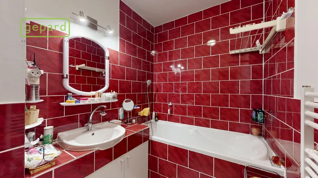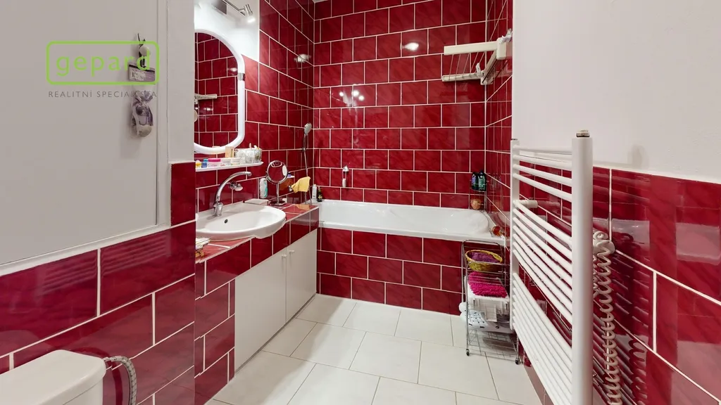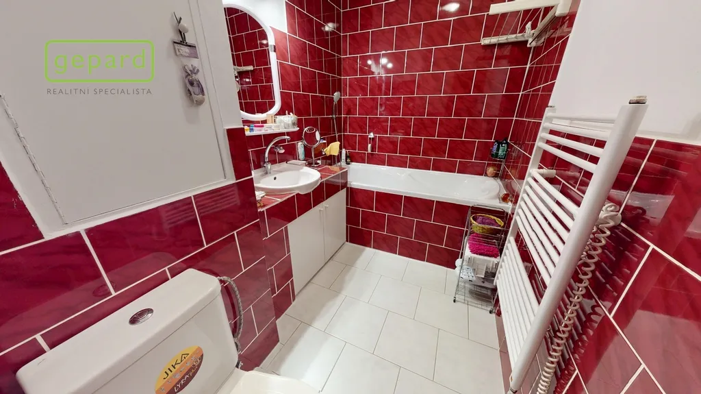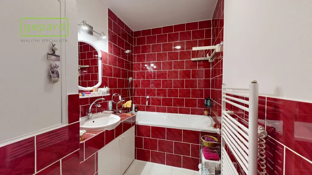 Bytová jednotka disponuje úžasnou vkusně zrekonstruovanou zděnou koupelnou. Náklady spojené s užíváním jsou velice příznivé. Pevné platby činí 2063,- Kč (+ zálohy na teplo, studenou a teplou vodu či úklid společných prostor, aktuálně ve výši 4417,- Kč).