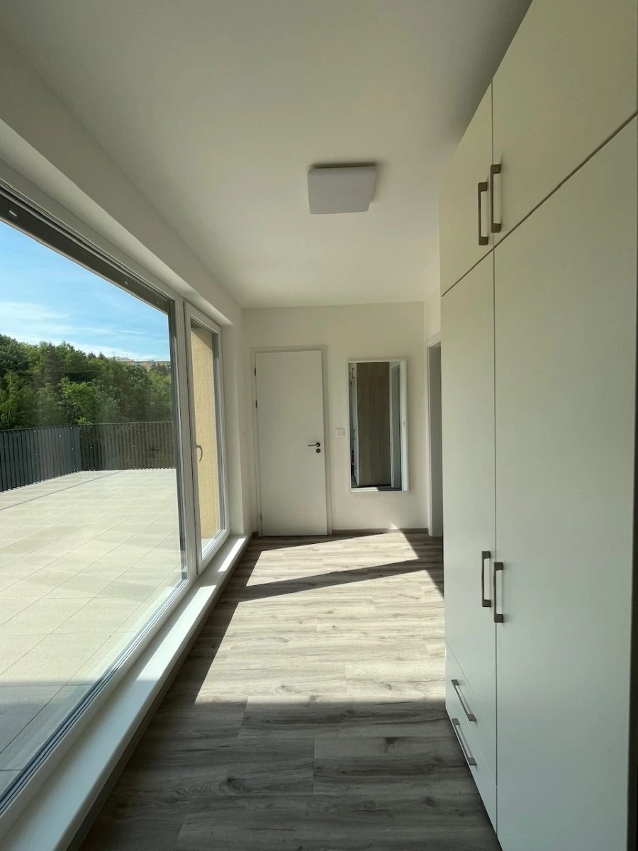 Byt je světlý a slunný. K bytu náleží velká terasa, ideální pro odpočinek nebo posezení s přáteli.