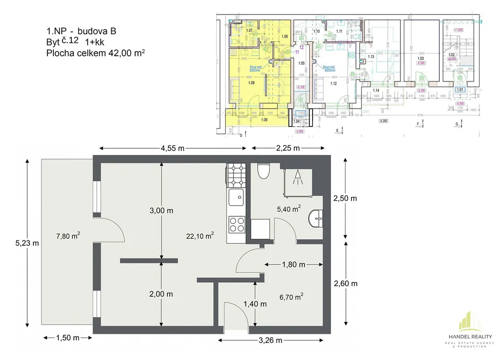 Nabízíme krásný byt 1+kk k prodeji v Břeclavi. S plochou užitnou 37,58 m² poskytuje dostatek prostoru pro pohodlné bydlení pro jednotlivce nebo pár. Byt se nachází v 1. NP a disponuje moderním a útulným interiérem, je také vybaven vlastní klimatizací, tím zajistí příjemné a komfortní prostředí po celý rok. Součástí jednotky je i galerie a terasa o velikosti 7,8 m². K bytu přináleží kóje s vlastní přípojkou elektřiny.