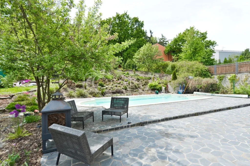 Nabízíme rodinný dům ve vyhledávané obci Tuchoměřice jen pár minut od Prahy 6 a letiště s pozemkem ve svahu navazujícím na les. Dům byl stavěn na klíč v nadstandardním provedením a s množstvím individuálních úprav. Kolaudace proběhla v roce 2009. V přízemí se nachází velkorysý obytný prostor spojený s jídelnou a kuchyní, u kuchyně je spíž. Moderní kuchyňská linka je kompletně vybavena vestavěnými spotřebiči. Z obývacího pokoje je výstup přímo na terasu s bazénem před domem. V mezipatře se nachází dva pokoje a prostorná koupelna se sprchovým koutem a toaletou. Ve druhém patře jsou tři ložnice, z nichž každá má vlastní koupelnu. Také je zde šatna a technická místnost s místem pro pračku a sušičku. Na podlahách jsou kvalitní laminátové plovoucí podlahy, dlažba a schodiště jsou dřevěná. Vytápění je řešeno plynovým kotlem, který je umístěn v suterénu vedle garáže. Na zahradě byl vybudován bazén o velikosti 8x4 m. Obec Tuchoměřice nabízí základní občanskou vybavenost. V místě je pošta, lékaři, mateřská škola a první stupeň základní školy. Přes obec vede cyklostezka. Bezproblémové je i spojení MHD na metro A Bořislavka 25 min. Letiště Václava Havla 10 min.