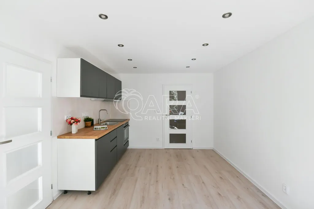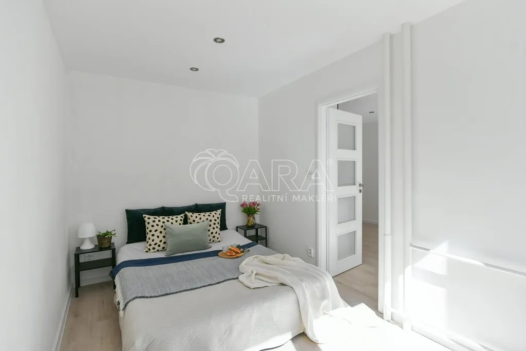 Byt o celkové výměře 38,7 m2 (vnitřní plocha 36,41 m2, sklep 2,2 m2) je vyřešen velmi prakticky a tvoří jej: obývací pokoj s kuchyňským koutem, ložnice, předsíň, a koupelna se sprchovým koutem a WC. Byt je čerstvě kompletně zrekonstruován (změna dispozice z původní 1+1, nové podlahy, dveře, podhledy, kuchyňská linka, zděné jádro atd.). Okna bytu jsou orientována na jih. Byt se nenachází v úrovni chodníku a má výhled do vzrostlé zeleně. K bytu náleží sklepní kóje umístěná v suterénu domu. Dům průběžně prochází revitalizací.