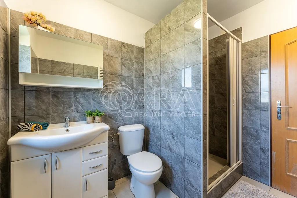 V přízemí o rozloze 114 m najdete tři vstupy do domu, obývací pokoj (28,80 m), pokoj (13,94 m), kuchyň (11,04 m), koupelnu s toaletou (3,45 m) a technickou místnost (1,92 m). V patře se nachází tři pokoje (13,94m, 13,25 m a 9,30 m), šatna, koupelna (5,20 m), toaleta (1,82 m) a kuchyň (23,51 m) se vstupem na západní balkon.