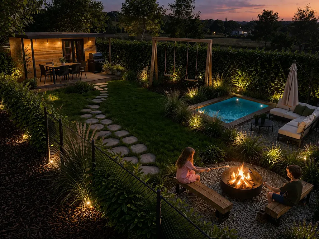 Představte si ji jako dětský ráj – houpačky, pískoviště nebo malý bazén, kde se děti v létě vyřádí. Večery pak patří opékání buřtů u vlastního ohniště nebo společnému grilování.