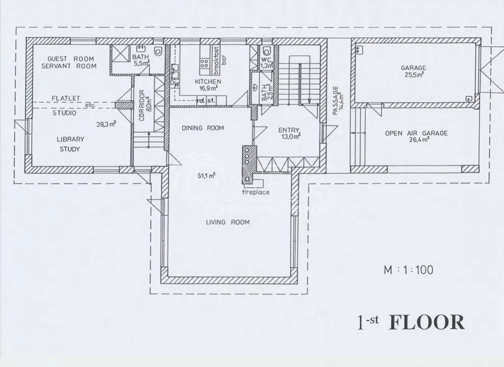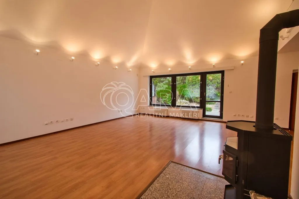 Samotný dům má zastavěnou plochu 264 m2, podlahovou plochu 417 m2, dvě garážová stání a rovinatou zahradu s velikostí 1000 m2. Vnitřní dispozice domu jsou 6+1. Největší je obývací pokoj s krbem a vysokým stropem, je k dispozici i čtveřice koupelen. Firma zde může najít klidné zázemí naprosto odlišné od klasických kancelářských budov. Neváhejte, ozvěte se a rádi zorganizujeme prohlídku.