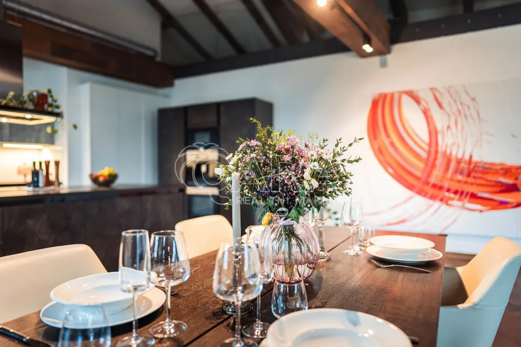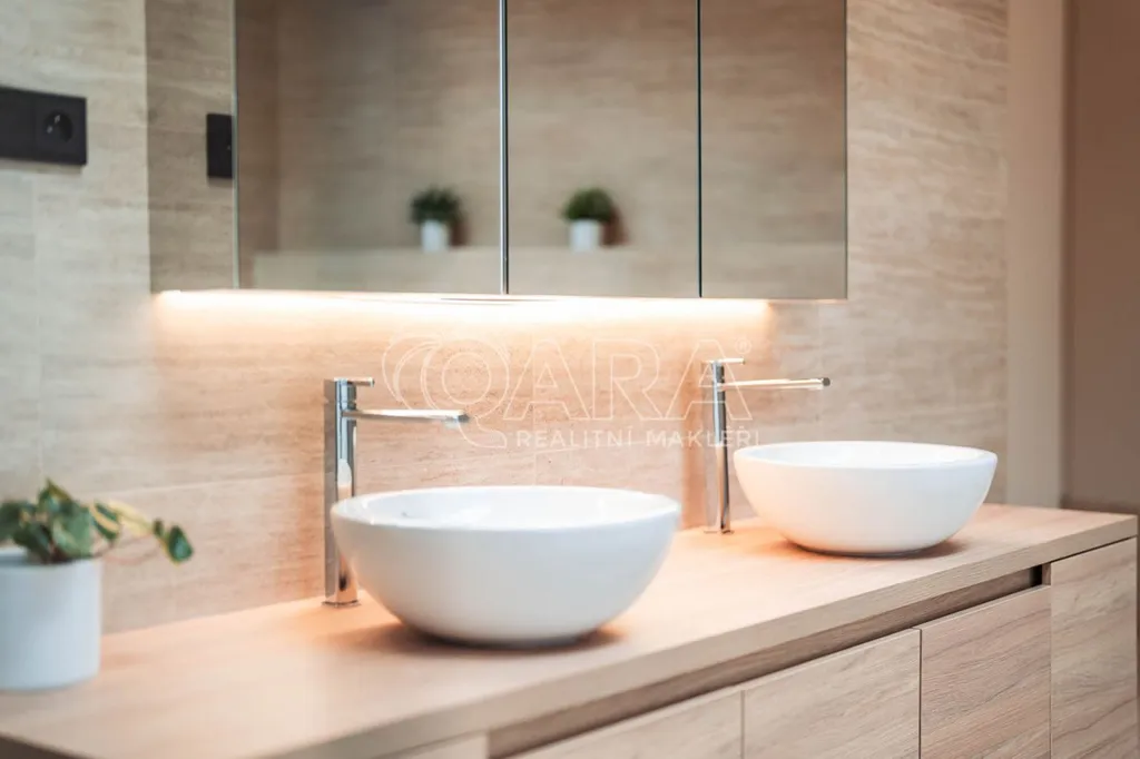 V celém bytě jsou dřevěné podlahy, vysoké stropy a nadstandardní množství vestavěných úložných prostor. Komfort zajišťuje stropní sálavé vytápění a chlazení, systém nucené výměny vzduchu, inteligentní ovládání domácnosti Loxone a vysokorychlostní optický internet.