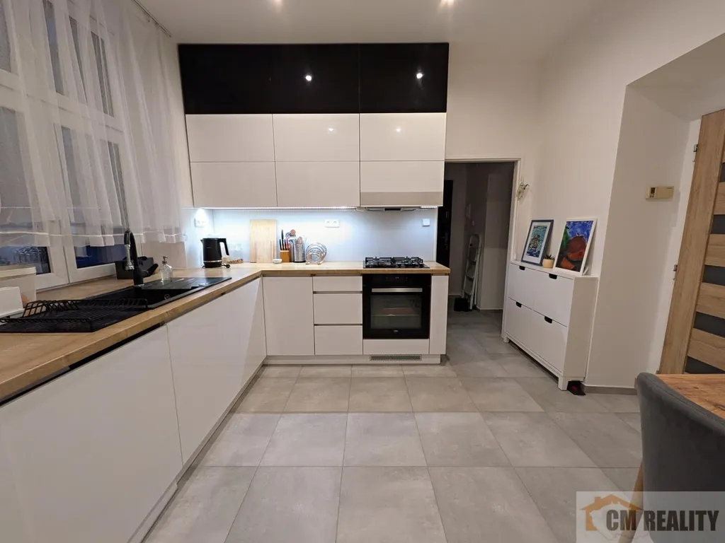Byt prošel v roce 2017 rekonstrukcí, koupelna je společná s WC, ta prošla rekonstrukcí o pár let dříve. V koupelně je umyvadlo, WC, vana a místo pro pračku. V koupelně je situován i kombinovaný kotel pro ÚT a ohřev vody. Kuchyňská linka je na míru, vč. vestavěné myčky, plynové varné deska, digestoře a vestavěné trouby. V rámci kuchyňské linky je prostor pro volně stojící lednici. V ložnici jsou vestavěné skříně na míru. Součástí pronájmu je kuchyňská linka vč. vestavěných spotřebičů a vestavěná skříň v ložnici. Ostatní nábytek na fotografiích není předmětem nájmu.