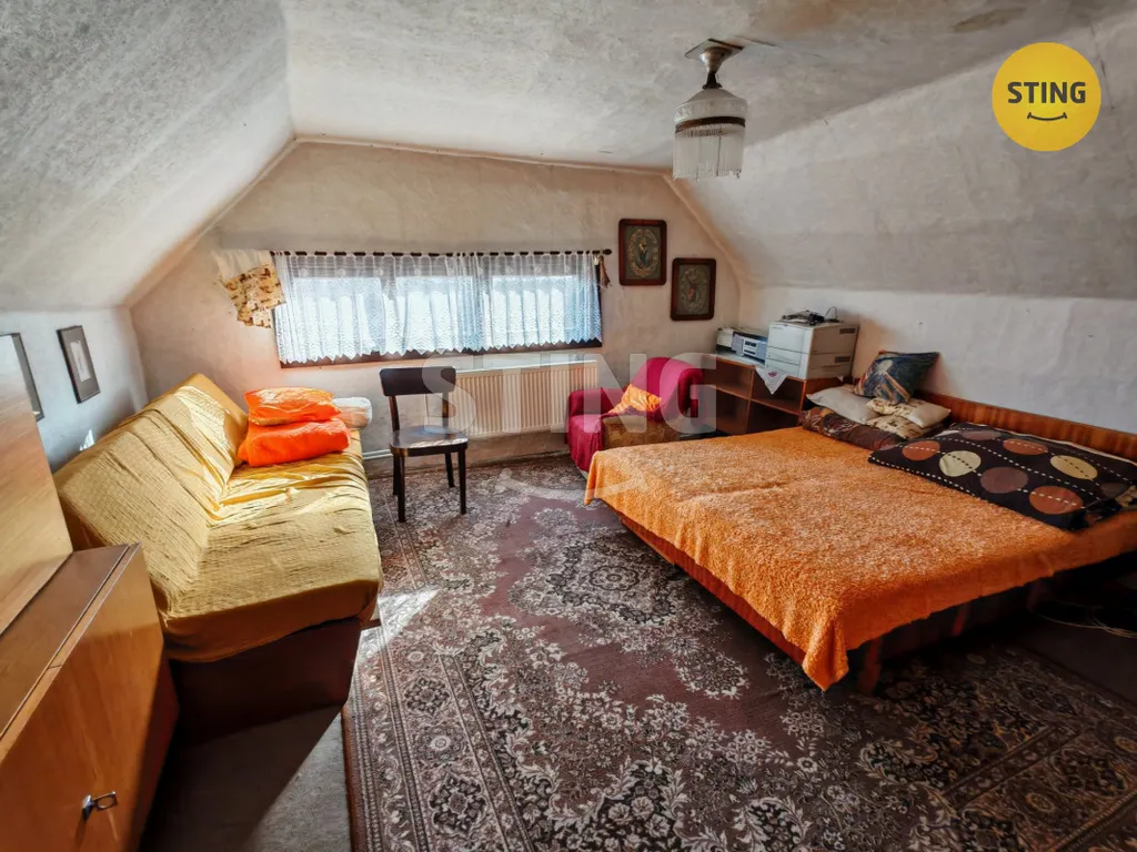 1.NP sestává z velké kuchyně, obývacího pokoje, koupelny a chodby, která je průchozí napříč domem. V podkroví jsou 2 obytné pokoje. Na dům navazuje stodola, která má potenciál nabídnou různá využití. Zahrádka je mírně svažitá.
