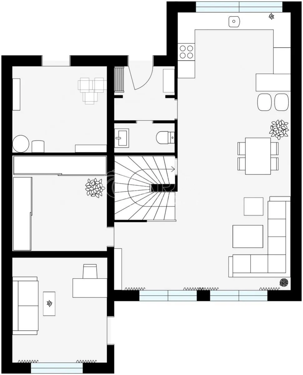 Velmi dobře udržovaný dům 5+kk nabízí téměř dvě stovky metrů čtverečních prostoru. Díky panoramatickým francouzským oknům je světlo hlavním hostem v přízemí i v patře. Najdete tu praktické vestavěné skříně a koupelna potěší velkorysým prostorem s rohovou vanou a výhledem na oblohu.