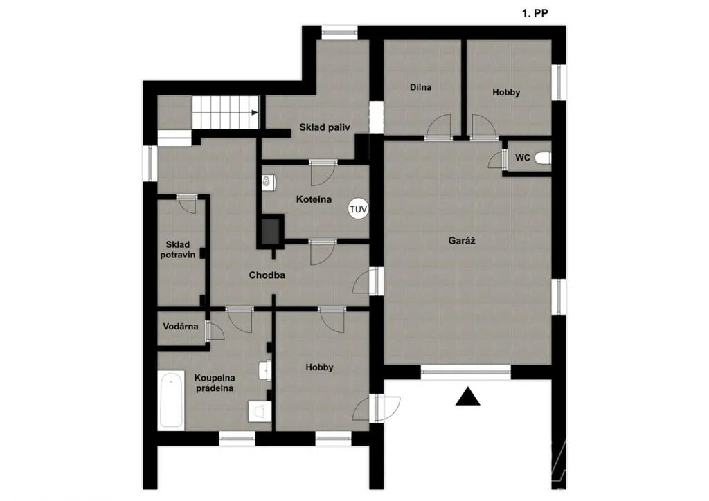 Součástí domu je prostorná garáž o velikosti 28 m, ze které lze vstoupit přímo do interiéru, což zvyšuje komfort zejména v zimním období. Velkým bonusem je také rozlehlá půda v celé šířce střechy, kterou lze upravit na další obytné místnosti nebo ateliér.