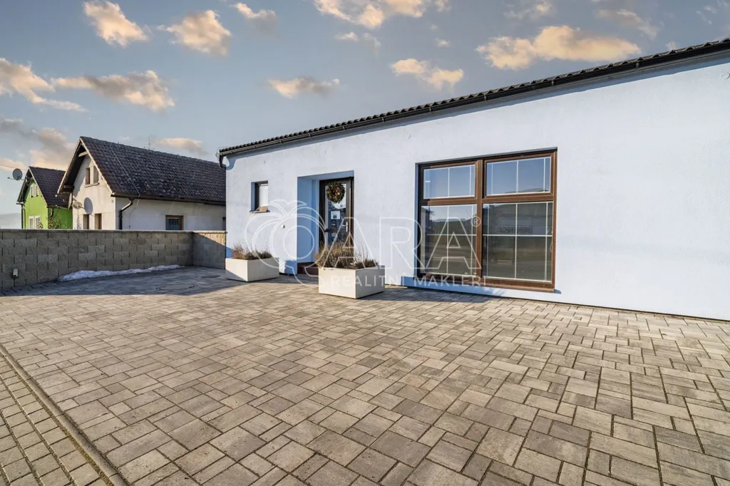 Na pozemku 816 m2 najdete zateplenou budovu ve tvaru písmene U o zastavěné ploše 228 m2. Ta má užitnou plochu 187 m2 a vešla se do ní spousta místností velká recepce se showroomem, zasedací místnost, 4 kanceláře, WC, skládek, kuchyňka, koupelna, místnost s technologiemi a sklad (téměř 60 m2) se zatepleným a vysokým stropem a 2 elektrickými vraty. Větší místnosti mají klimatizaci. Součástí prodeje je i nábytek v recepci a kuchyňce. Objekt je napojený na elektřinu, vodovodní řad a kanalizaci. Za budovou můžete grilovat a relaxovat díky zastřešenému posezení.