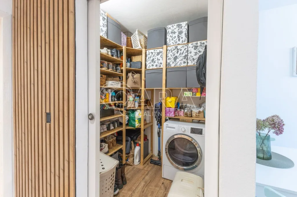 Byt nabízí dostatek úložného prostoru v ložnici se nachází šatní skříň, v prostorné chodbě je komora s velkým úložným prostorem.