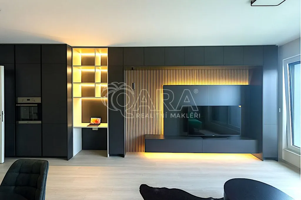 Zprostředkujeme Vám ke koupi nový, velmi krásný, prémiový byt v osobním vlastnictví s dispozicí 1+kk o výměře 41,7 m2, a to včetně garážového stání umístěného v pod podlaží domu a vybaveného sklepa (4 m2), ve 3NP moderního, bytového domu v projektu TESLA Praha 9 Hloubětín. Byt je navržen a vybaven jako celek pro zájemce, který chce koupit byt již zařízený. Stávající majitel bytu velmi dbal na funkčním, velmi kvalitním, designovém a dalo by se říci až nadčasovém vybavení, které ocení náročný zájemce. Byt je orientován do vnitrobloku a zajišťuje tímto bytu punc TICHÝ, KLIDNÝ. Již výše zmiňovaný sklep, který je umístěn v pod podlaží domu je vybaven policovým systémem, který zajišťuje dostatek úložných prostor.