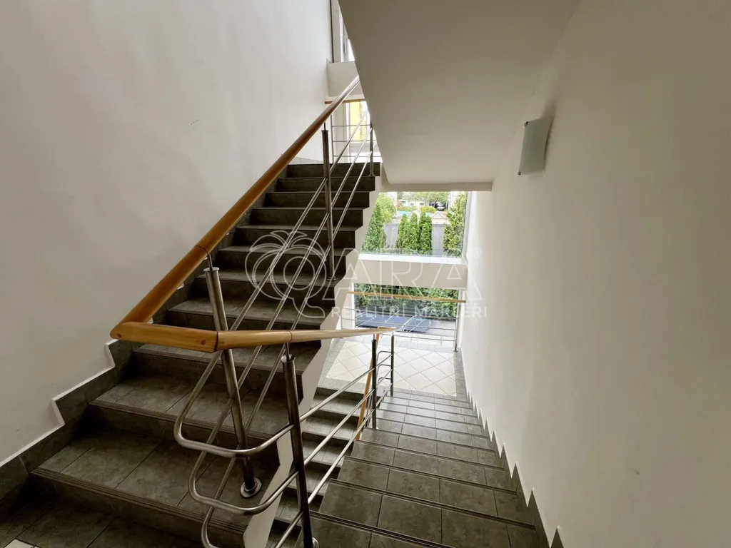 Jde o 9 moderních, plně zařízených prosklených kanceláří se zázemím ( plně vybavená kuchyňka, pánské a dámské toalety, serverovna), kde je možno zřídit až 33 pracovních míst. Součástí inzerátu je 3D prohlídka (stisknout kolečko "spustit prohlídku"), jejíž součástí je i 3D půdorys.