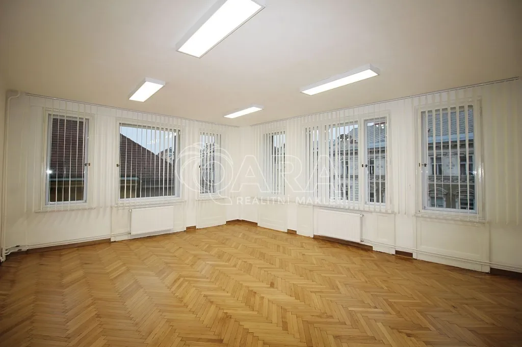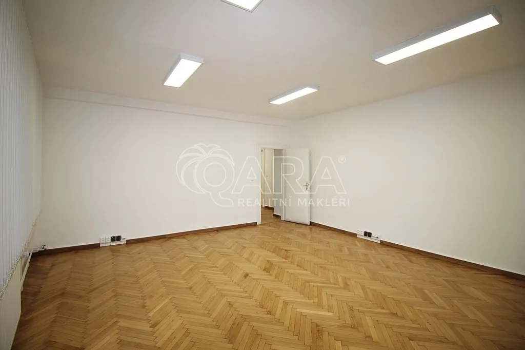 Pronájem kanceláře, 82 m2, 2 místnosti + vstupní chodba, po rekonstrukci, ve 4. patře secesního domu s výtahem a nepřetržitou ostrahou, sociální zázemí a kuchyňka na chodbě, na podlahách koberce, telefon,internet, možno zajistit úklid za poplatek, možnost pronájmu reklamních vitrín v pasáži nebo na sloupech domu. Prostory se nacházejí v samotném centru Prahy, s veškerou občanskou vybaveností a výbornou dostupností MHD. K pronájmu i jiné kanceláře různých dispozic. Doporučujeme.