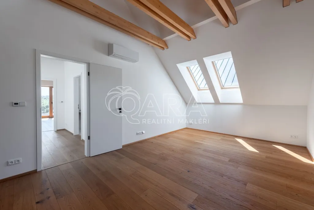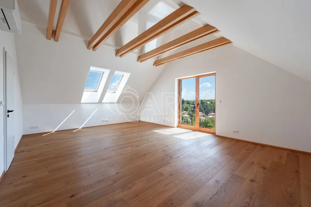 Rozsáhlá terasa navazuje na obývací pokoj a jídelnu a propojuje tak dům se zahradou a bazénem. Zahrada má orientaci na jihovýchod a nabízí krásné výhledy do širokého okolí. Auta lze parkovat na uzavřené zpevněné ploše před domem. Vila byla dokončena v roce 2022 a záruky na stavební část domu jsou až do května 2027. K nadstandartnímu vybavení patří ocelová a dřevěná eurookna s izolačním trojsklem, předokenní žaluzie, kvalitní dřevěná dubová podlaha, velkoformátové moderní dlažby a luxusní sanita, stropy otevřené do krovu a vestavěné skříně.
