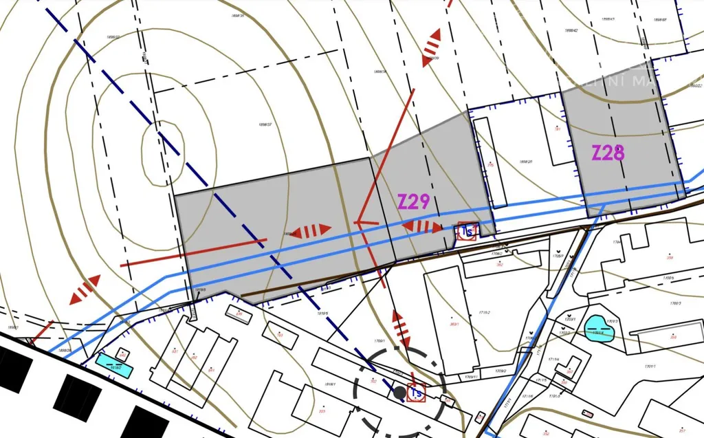 Celá plocha je v zastavitelném území. Dle územního plánu se jedná o plochy smíšené výrobní - výrobny a provozovny živnostenského charakteru (označení VS - Z29). Maximální celková zastavěná plocha je 1500 m. Možno postavit např. výrobní či skladovací halu. Max. výška stavby/budovy 15 m (1+P). Pozemek lze do budoucna rozdělit až na 4 parcely (minimální velikost každého nově vzniklého pozemku bude 2500 m). Nyní však prodáváme jako celek.
