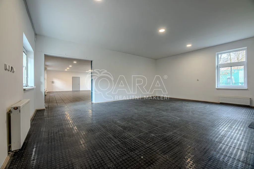 Vytápěný provozní a skladovací prostor o celkové ploše cca 170 m, včetně přisazené garáže o velikosti cca 43 m, navazuje na kancelářské zázemí o ploše cca 42 m.