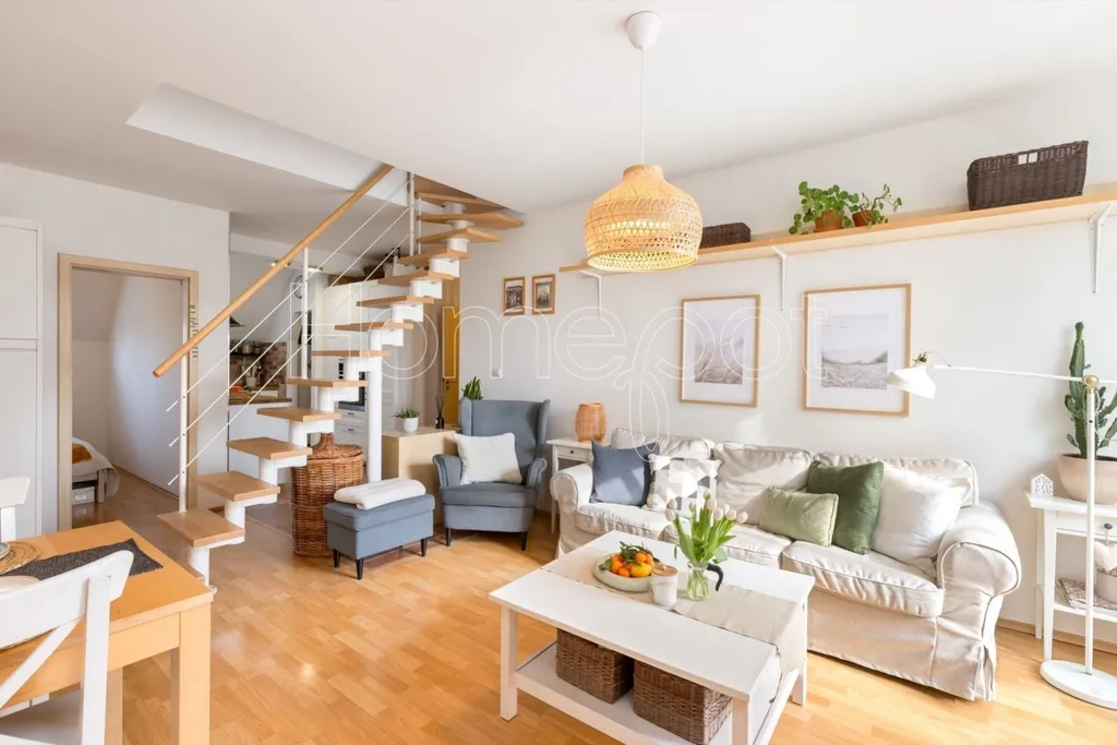 Pojďte se podívat na byt o podlahové ploše 54 m, který nabízí navíc horní prostor o dalších 26 m. Ve výsledku tak získáváte až 80 m prostoru k využití.