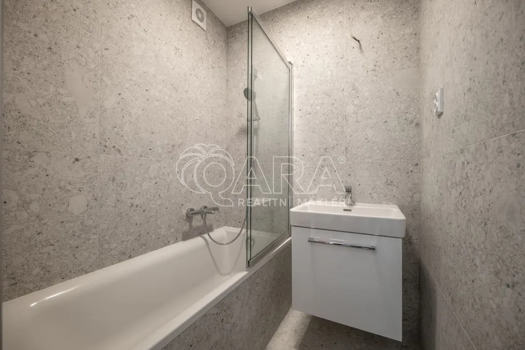 Celý byt prošel kompletní rekonstrukcí ve světlých neutrálních tónech, které podtrhují jeho vzdušnost a moderní charakter. Koupelna je s vanou a sprchovou zástěnou, toaleta je oddělena.