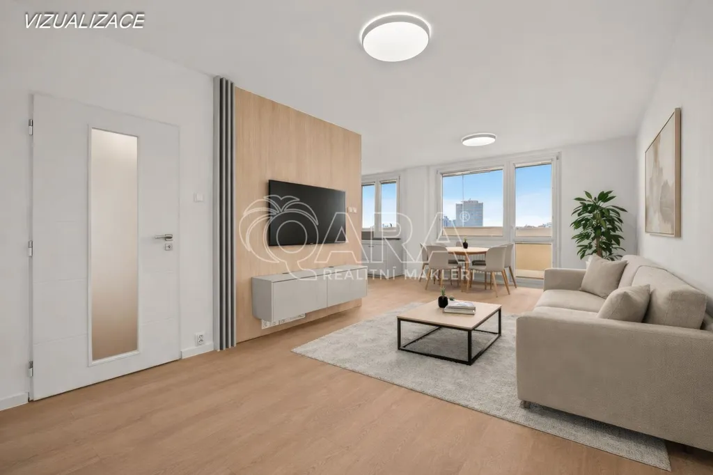 Dominantou bytu je světlý obývací pokoj s moderním kuchyňským koutem a přímým vstupem na lodžii. Byt dále disponuje třemi samostatnými neprůchozími pokoji o velikosti cca 14 m, které poskytují dostatek soukromí pro každého člena rodiny.