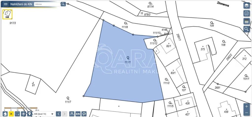 Podíl 1/4 na přístupové cestě parc. č. 111/8: výměra 380 m, který zajišťuje právní i fyzickou dostupnost k pozemkům.