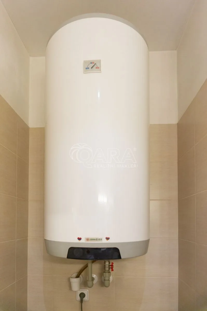 Kuchyňská linka je vybavena varnou deskou, digestoří, mikrovlnnou troubou a ledničkou. Koupelna je se sprchovým koutem, WC a pračkou. Dostatek úložného prostoru poskytují vestavěná skříň v předsíni a obývací stěna. Ohřev vody je zajištěn elektrickým bojlerem, topení elektrickými přímotopy.