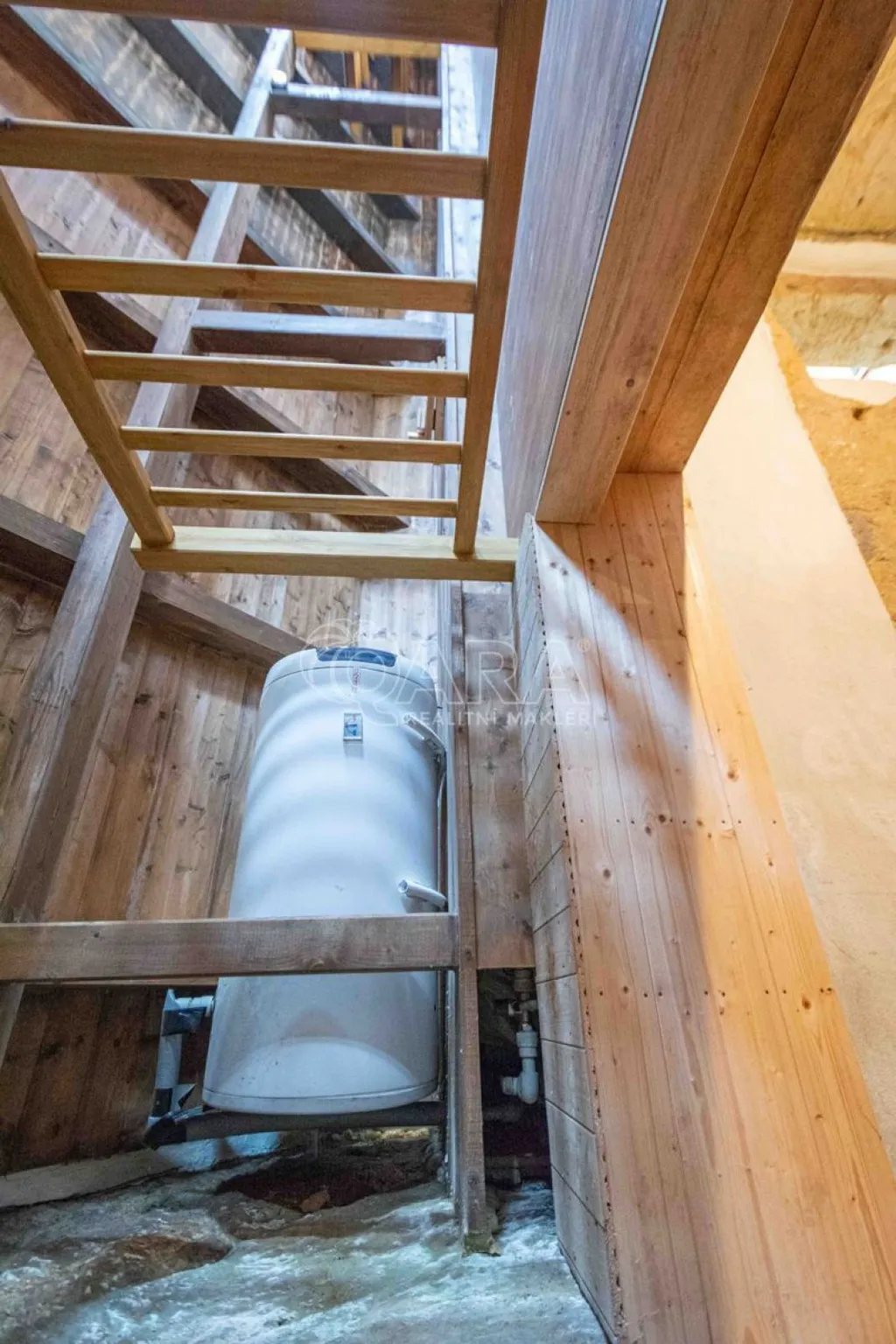Dispozice: vstupní chodba ze které je vstup do skalního sklepa, koupelna se sprchovým koutem a WC zapuštěným ve skále, obývací pokoj s krbem, kuchyně taktéž zapuštěná do skály, pokoj v suterénu a otevřené horní patro, sloužící jako ložnice. Venku technická místnost s motorovým proudem, dílna a další sklep, vše zapuštěné ve skále s vlastním vchodem.