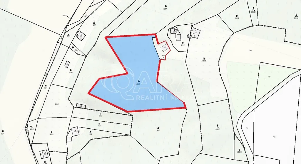 Zastavěná plocha a nádvoří o velikosti 347 m2, k tomu okolní zalesněný pozemek o velikosti 5953 m2 (vedeno jako ostatní plocha). Přístup k chatě přes vedlejší svažité pozemky ve vlastnictví Lesy ČR, příjezdovou lesní cestou od obce Kanina. Aktuálně se zapisuje věcné břemeno přístupu a vodovodu přes sousední soukromý pozemek.