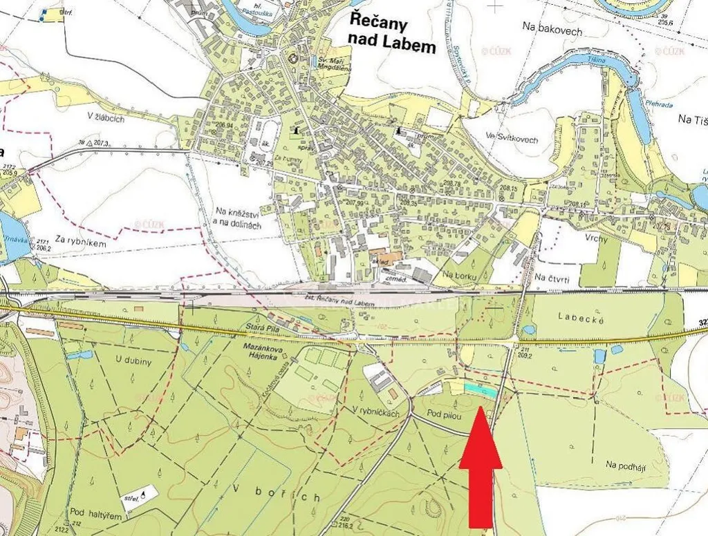 Na pozemku dřevěný sklad, využívaný jako chata a malý sklep. Územním plánem pozemek označen jako SV plochy smíšené obytné. Vodovod ani kanalizace v místě není, nutno řešit studnou a septikem. Pozemek v katastru Zdechovice, ale v blízkosti obce Řečany nad Labem.
