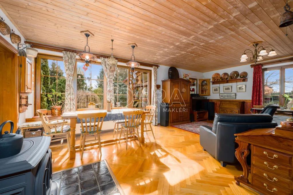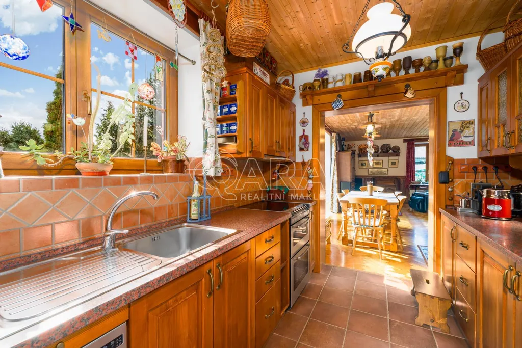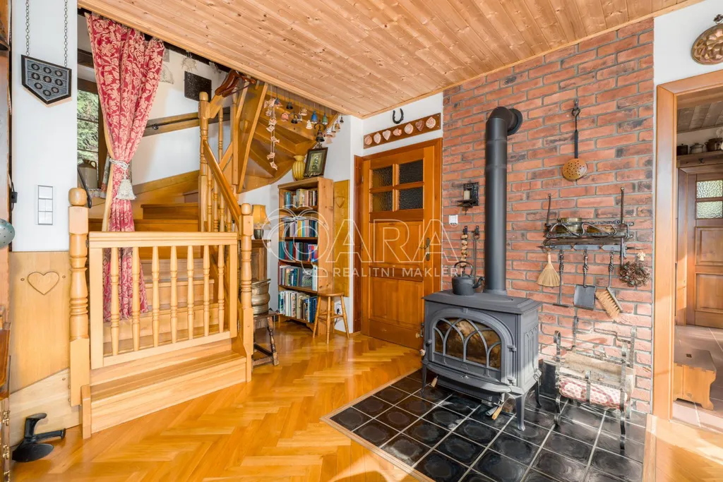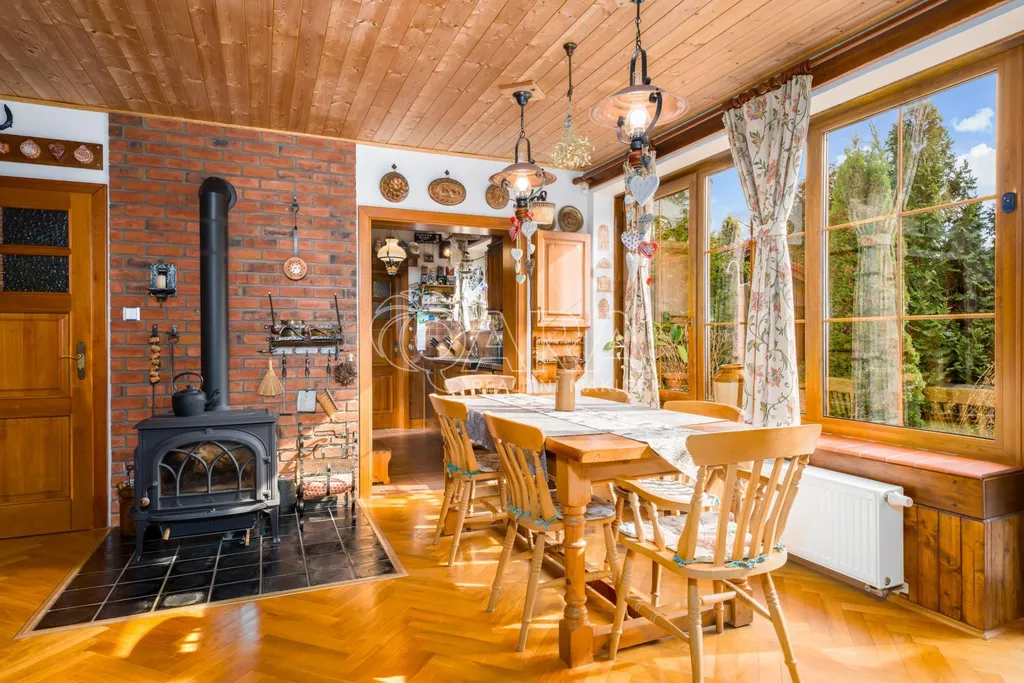 Hledáte bydlení v blízkosti přírody ? Nabízíme Vám k prodeji krásný rodinný dům o dispozici 4+kk o užitné ploše 138 m2. Tento rodinný dům se nachází v klidné části České Kamenice nedaleko Českého Švýcarska. Dům Vám nabízí krásný obývací pokoj, propojený s kuchyňskou linkou a krásným výhledem do udržované zahrady a vstupem na terasu s pergolou. Dále máte k dispozici tři ložnice, dvě koupelny, toaletu, půdní prostor, venkovní zastřešené parkovací stání, zahradní domek a dřevník. V celém domě jsou podlahy z lakovaných dubových parket a všechny stropy jsou z borovicového dřeva. K vytápění domu slouží elektrický kotel, podlahové vytápění pod dlažbou v koupelnách, na chodbě a v kuchyňské části. Určitě oceníte i vytápění v litinových krbových kamnech od značky Jotul. K dispozici máte krásnou, udržovanou zahradu o celkové ploše 799 m2, která Vám nabízí dostatek soukromí s převážně stále zelenými keři a stromy. K parkování Vám poslouží stání pod dřevěným přístřeškem. Město Česká Kamenice Vám nabízí krásnou přírodu, procházky, obchody, restaurace, školy, školky. Domluvte si prohlídku a přijďte se sami přesvědčit o jedinečnosti tohoto místa.