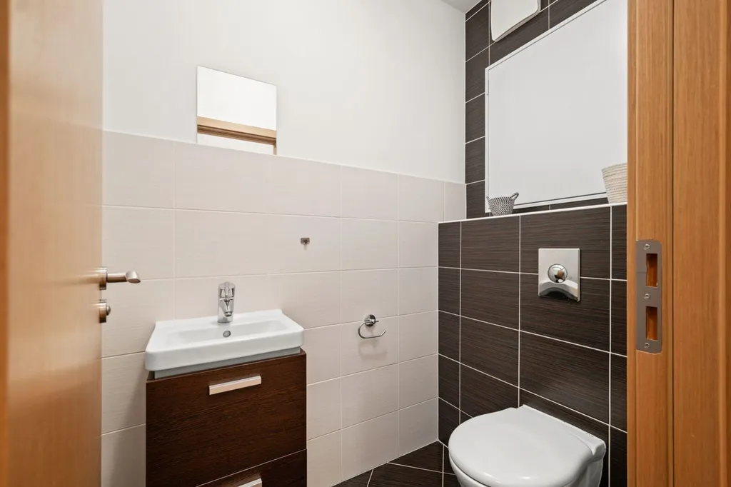 Tento prostorný byt situovaný ve 3. patře moderního domu, nabízí velkorysých 93,5m2. Je ideálně navržen pro rodinný život s důrazem na soukromí. Srdcem domova je otevřený a světlý obývací pokoj s kuchyňským koutem, který je perfektní pro společné chvíle a reprezentaci. Díky odděleným pokojům pro děti a rodiče, naleznete klid a komfort pro všechny. Velkou přidanou hodnotou jsou dva samostatné balkony, přístupné z hlavních místností. Ty Vám umožní vypít ranní kávu nebo relaxovat s pohledem na okolní přírodu. Samozřejmostí je k bytu také garážové místo a sklep pro ukládání věcí. Tento byt je připraven stát se Vaším novým domovem, který splňuje ty nejvyšší nároky na kvalitu a provedení.