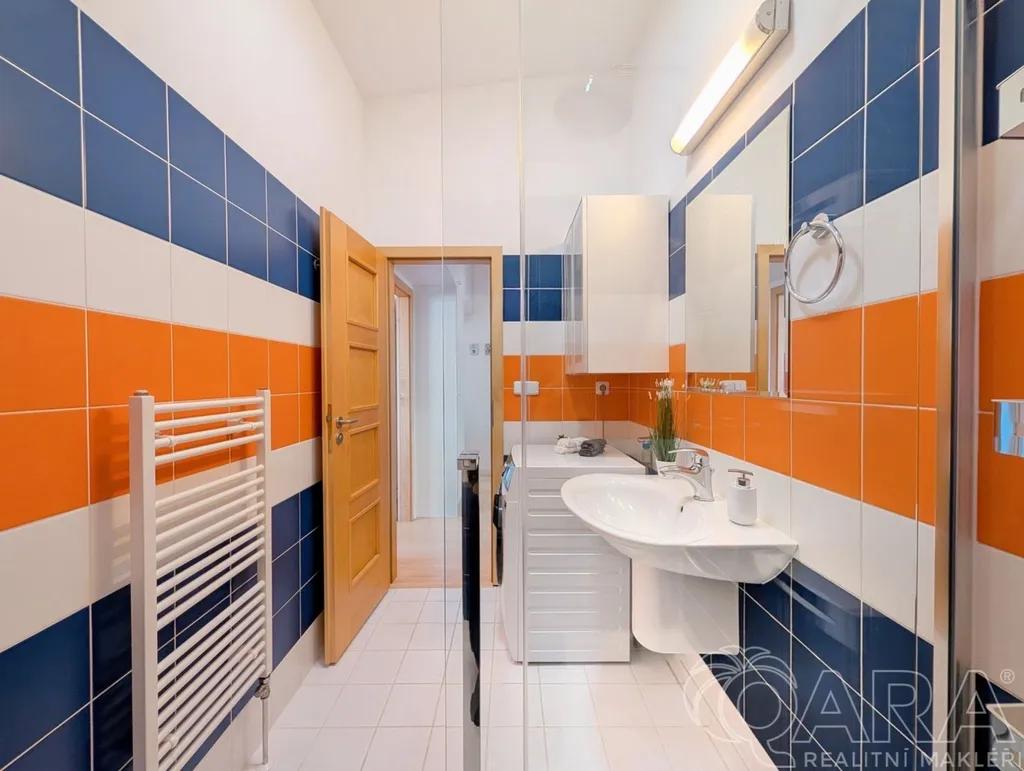 Koupelna prošla v loňském roce rekonstrukcí a je vybavena sprchovým koutem, umyvadlem, pračkou a topným žebříkem. Samostatné WC je oddělené a vybavené topnou rohoží pro vyšší komfort.