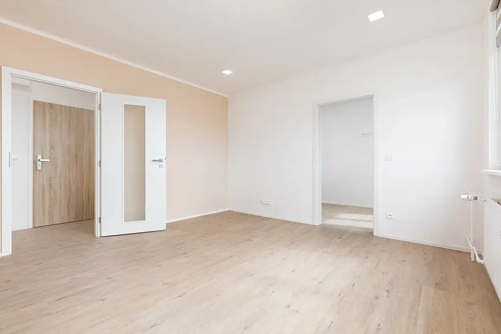 - kompletní rekonstrukce – nové omítky, elektroinstalace, podlahy (vinyl), nové interiérové i vstupní dveře